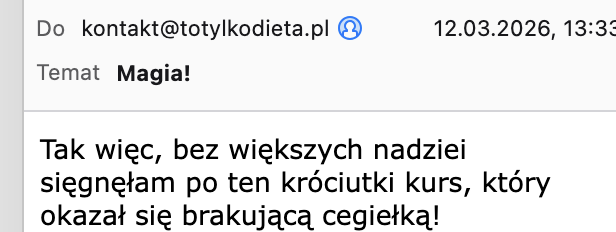 Jeśli po przerobieniu stwierdzisz, że materiał nie był warty minimum 5x tyle - napisz na kontakt@totylkodieta.pl i bez pytań oddam Ci pieniądze bez zabierania dostępu do materiału.